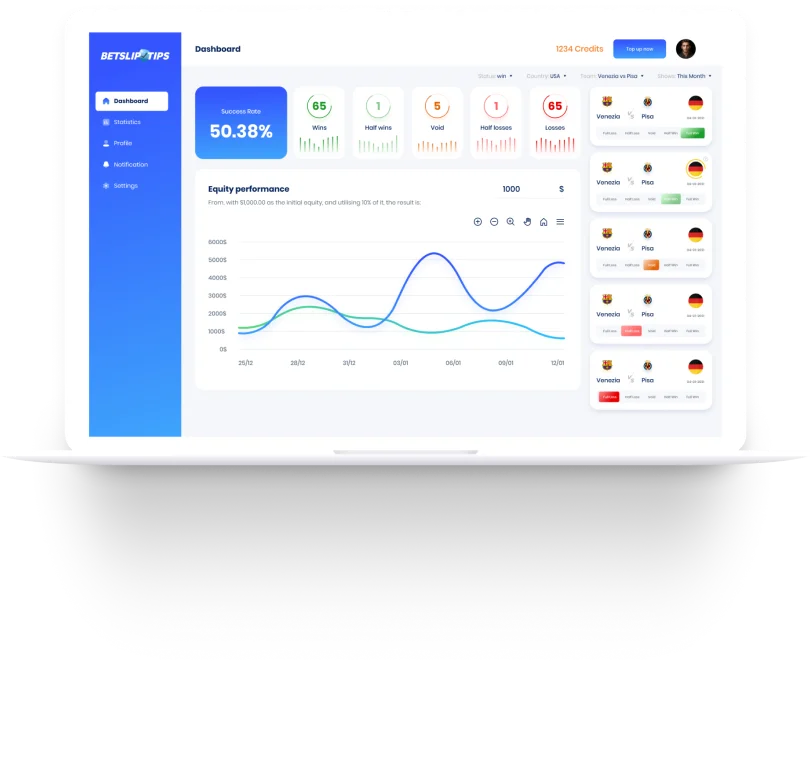 Full transparency — track every tip's result with in-depth stats and staking guidance.